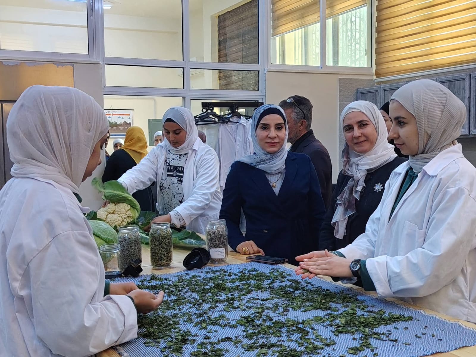 وتجولت الخوالدة في مختلف مرافق المدرسة، واطلعت على سير العملية التعليمية فيها، بما في ذلك المشاغل المهنية، وحظائر الأغنام والماعز والدواجن، إضافة إلى البيوت البلاستيكية المخصصة لإنتاج الخضار والنباتات الطبية ونباتات الزينة، مثمنةً الجهود المبذولة في دعم الجانب التطبيقي والعملي للطالبات.