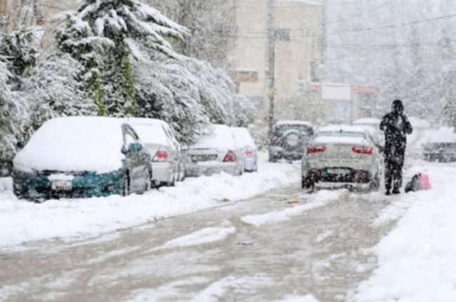 ويمتد تساقط الثلوج بشكل متقطع ومترافق مع زخات البرد الكثيفة أحياناً في عموم المرتفعات الجبلية في جنوب المملكة.