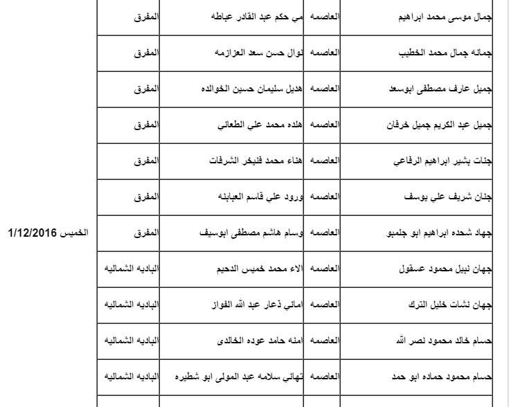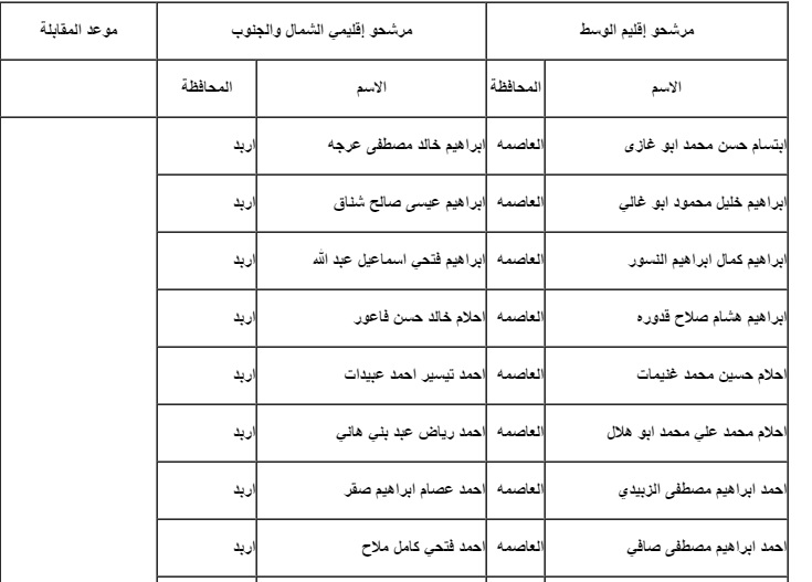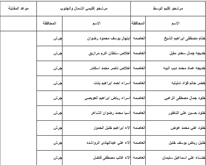 وكالة الناس – يدعو ديوان الخدمة المدنية واستناداً لأحكام المادة (14) من تعليمات اختيار وتعيين الموظفين الحكومين السارية المفعول التالية أسماؤهم من حملة شهادة الدبلوم في المحاسبة التواجد في مبنى معهد الإدارة العامة الكائن في شارع الملكة رانيا (شارع الجامعة الأردنية سابقاً) بجانب جريدة الدستور الساعة التاسعة صباحاً، وذلك لحضور المقابلة الشخصية المركزية حسب المحافظات بالتاريخ المبين إزاء اسم كل منهم، مصطحبين معهم الهوية الشخصية الصادرة عن دائرة الأحوال المدنية والجوازات وكل من لم يحضر يعتبر مستنكفاً عن التعيين.