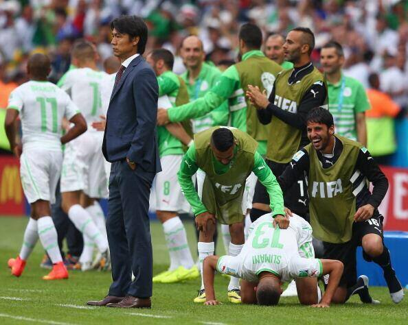 وتقدم الممثل العربي الوحيد في النهائيات المقامة بالبرازيل عن طريق المهاجم إسلام سليماني الذي شارك كأساسي للمرة الأولى في الدقيقة 26. وأضاف رفيق حليش الهدف الثاني بضربة رأس إثر ركلة ركنية بعدها بدقيقتين.