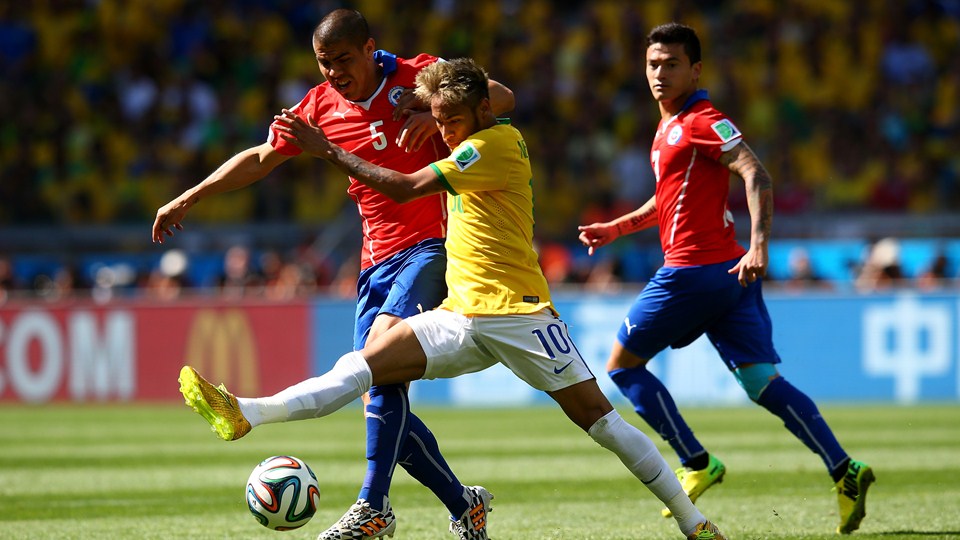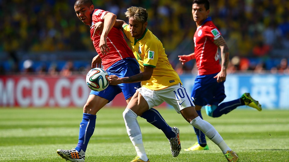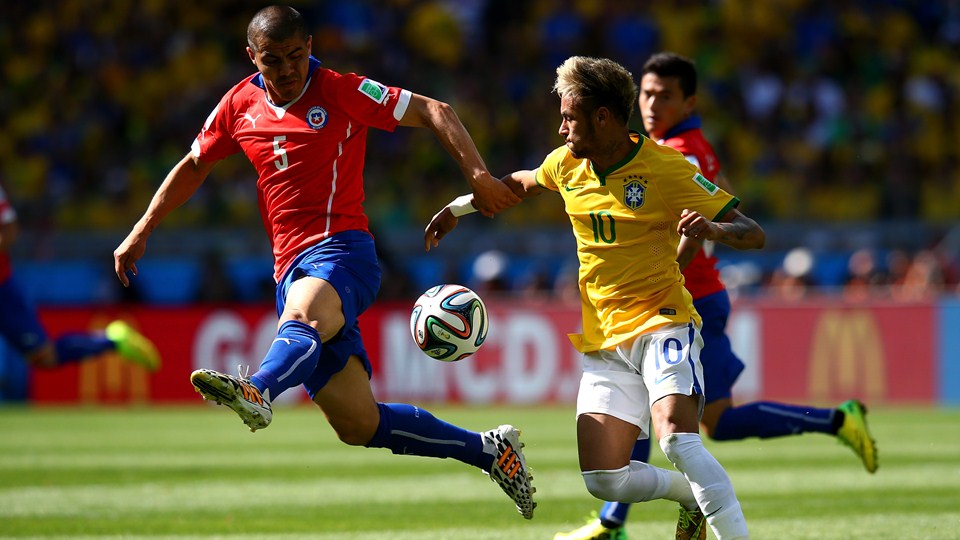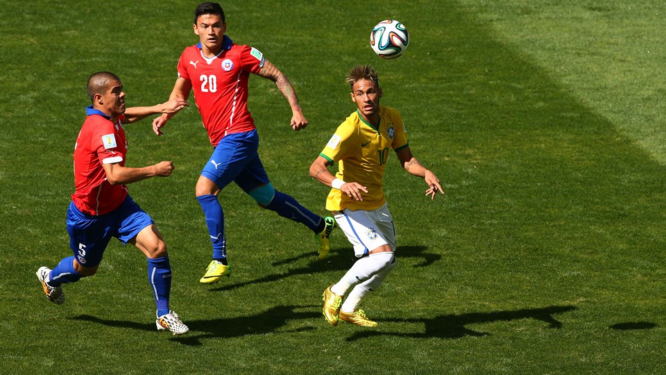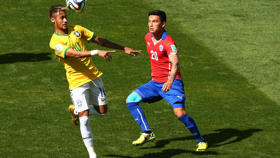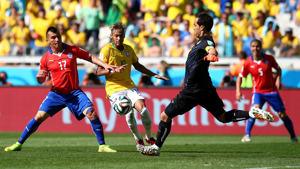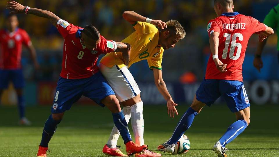 وتعرض هالك للإعاقة داخل منطقة الجزاء التشيلية في الدقيقة 14 من اللاعب ماوريسو إيسلا، إلا أن الحكم الإنجليزي هاورد ويب تغاضى عن احتساب ركلة جزاء، ثم سدد نيمار كرة قوية من ركلة حرة أمسكها الحارس التشيلي كلاوديو برافو.