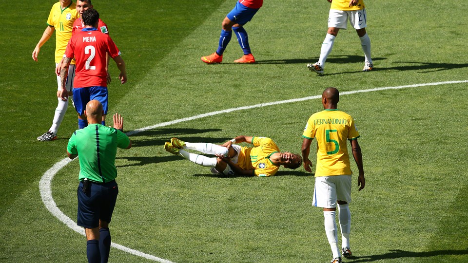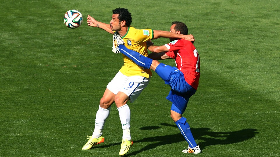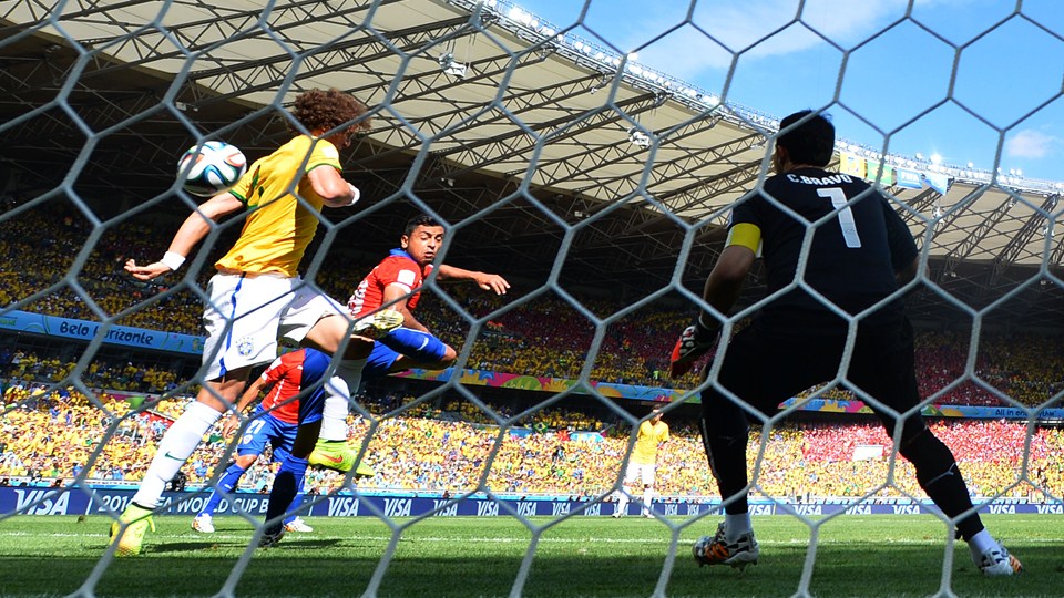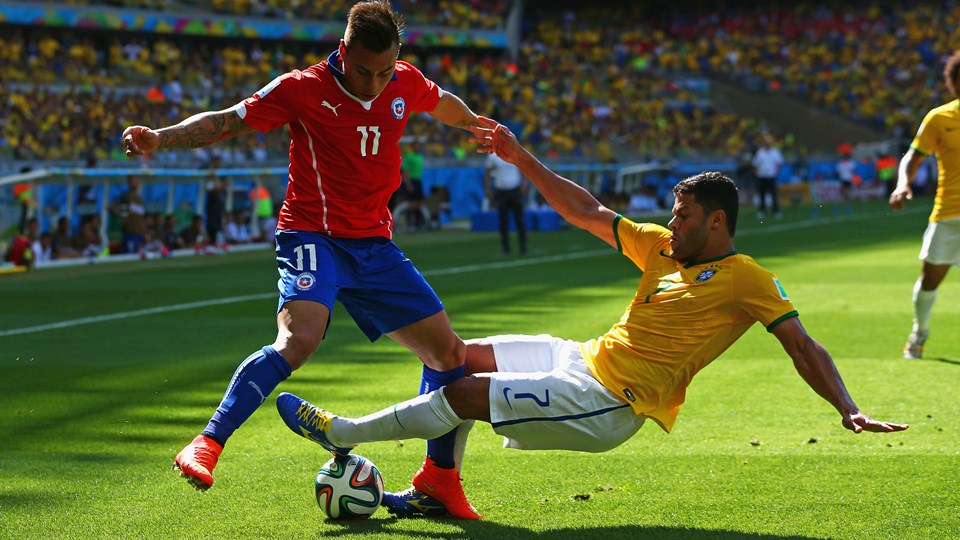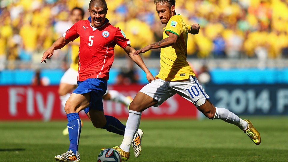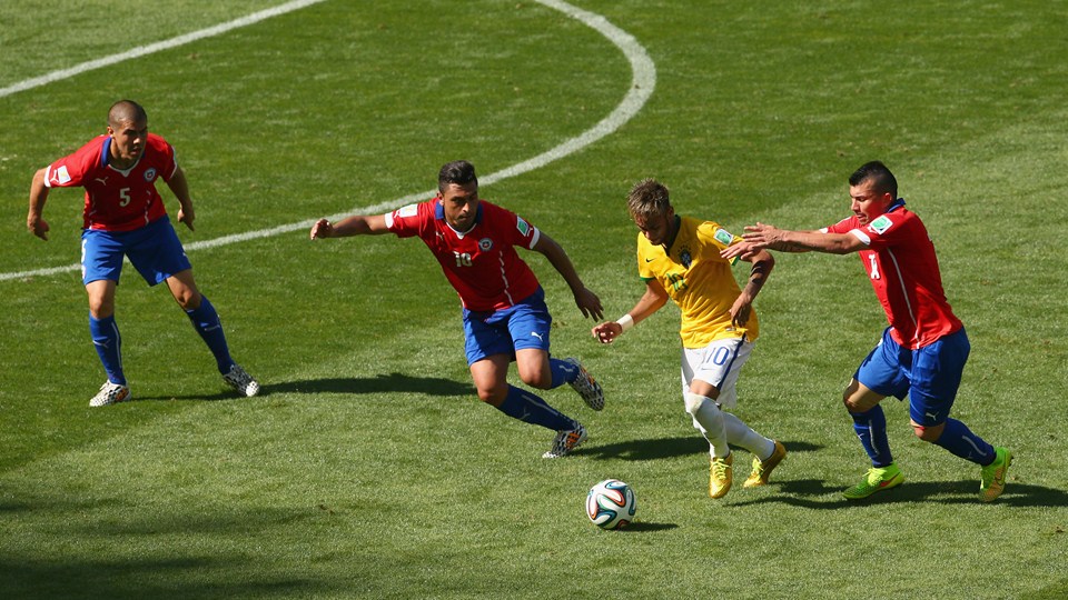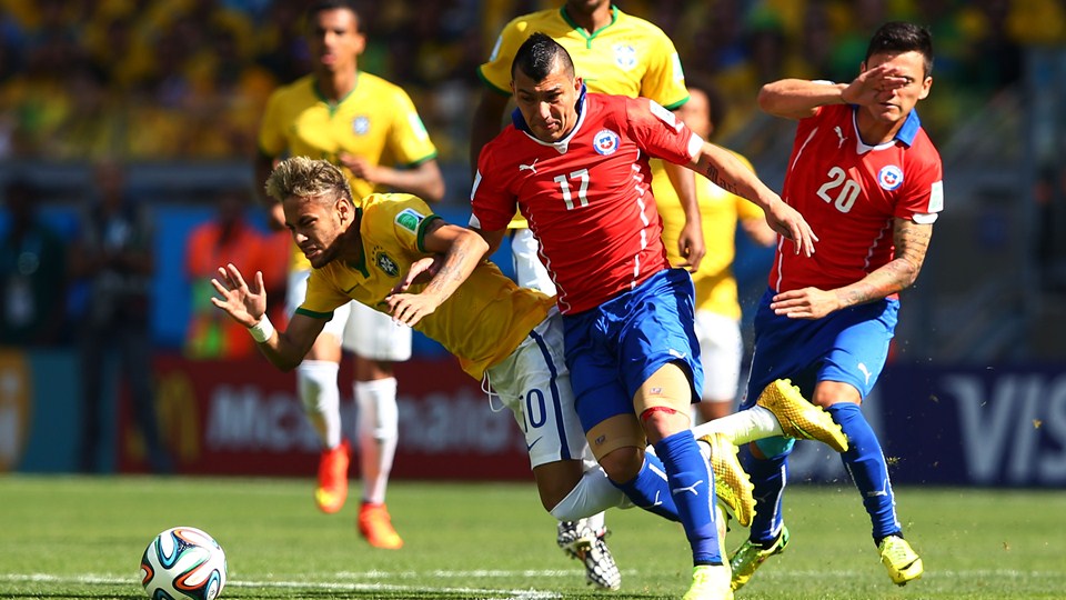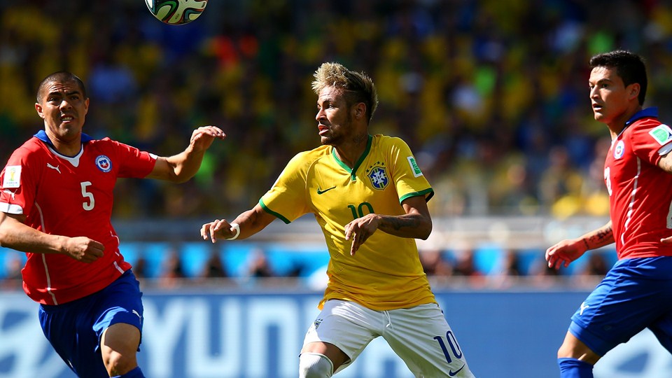 وتعرض هالك للإعاقة داخل منطقة الجزاء التشيلية في الدقيقة 14 من اللاعب ماوريسو إيسلا، إلا أن الحكم الإنجليزي هاورد ويب تغاضى عن احتساب ركلة جزاء، ثم سدد نيمار كرة قوية من ركلة حرة أمسكها الحارس التشيلي كلاوديو برافو.