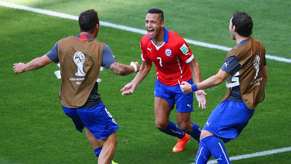وشهدت الدقيقة 32 هدف التعادل للمنتخب التشيلي بسبب خطأ فادح ارتكبه الثنائي مارسيلو وهالك، إذ لعب الأول رمية جانبية للثاني، الذي يستطع الحفاظ على الكرة ليقطعها فارجاس ويمرر الكرة لسانشيز، فلم يجد أي صعوبة في وضعها على يمين سيزار.