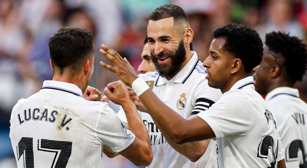 ثلاثية بنزيمة تقود الريال للفوز برباعية على ألميريا في الدوري الإسباني