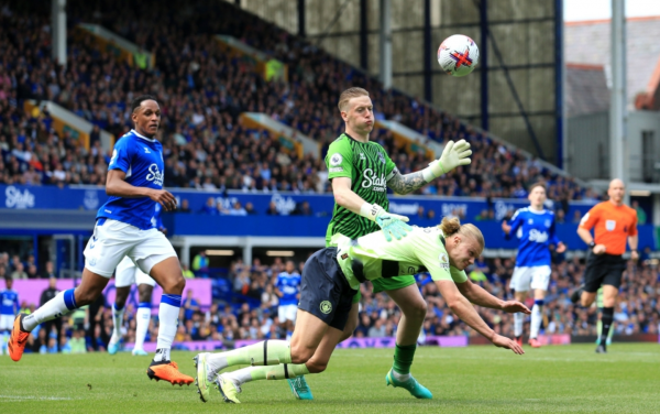 وعلى ملعب (جوديسون بارك)، افتتح النجم الألماني إيلكاي جوندوجان التسجيل لمانشستر سيتي في الدقيقة 37، قبل أن يضيف النجم النرويجي الشاب إيرلينج هالاند الهدف الثاني في الدقيقة 39.