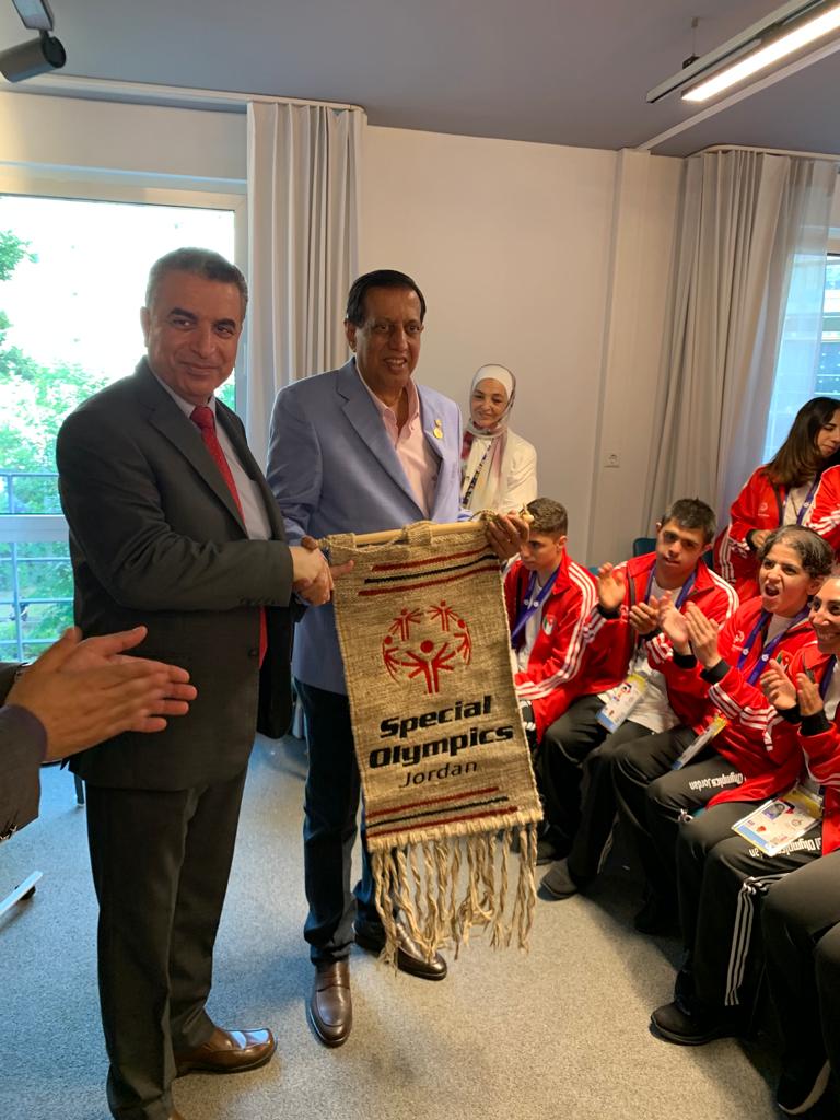 وكان الأمير مرعد بن رعد كبير الأمناء شاهدا على ذلك الإهداء وهو الذي حرص على تهنئة اللاعبات وحياهن على مشاعرهن الوطنية، حيث حرص منذ حضوره حفل افتتاح الألعاب والتي افتتحها الرئيس الألماني فرانك فالتر شتاينماير وتعتبر أكبر منافسات رياضية من نوعها للأشخاص من ذوي الإعاقة الذهنيه، حرص على متابعة مشاركات لاعبي الأردن في ملاعب أرض المعارض الكبرى ببرلين والمعروفة بميسي، مما ترك الكثير من الأثار الطيبة في نفوس اللاعبين، حيث صحبه الدكتور على الشواهين المدير الوطني للأولمبياد الخاص الأردني في تلك الجولات على الملاعب المختلفة وبحضور سمو الأميره دينا مرعد.