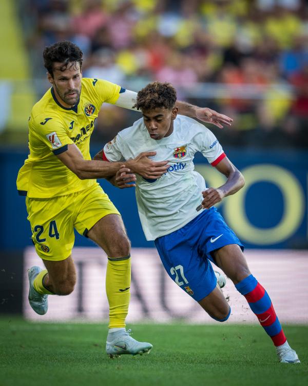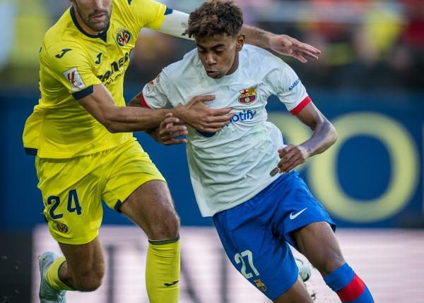 وصوب لامين يامال كرة صاروخية، ارتطمت بالقائم الأيمن لمرمى فياريال، في الدقيقة 55.
