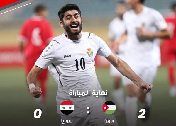 وأحرز ثنائية منتخب الأردن وسيم الريالات بالدقيقة “14” ورزق بني هاني “71”.