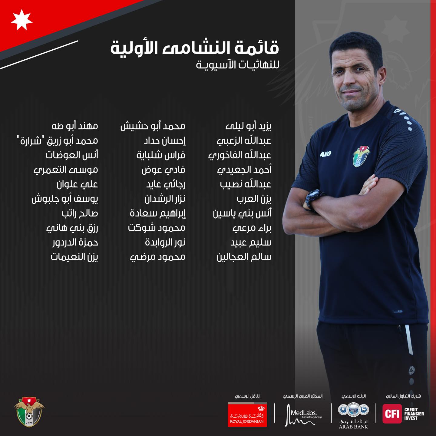 إعلان قائمة منتخب النشامى الأولية لبطولة كأس الأمم الآسيوية (أسماء)