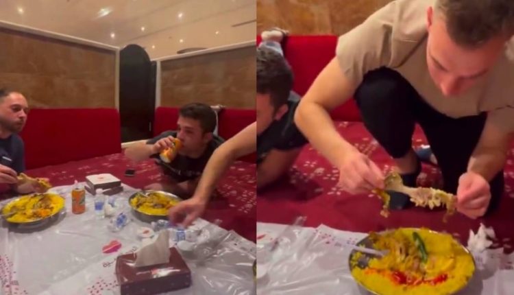 وثق مقطع فيديو متداول لاعب التعاون الفارو ميدران وزملاءه وهم يتناولون الكبسة بطريقة غريبة في أحد المطاعم.