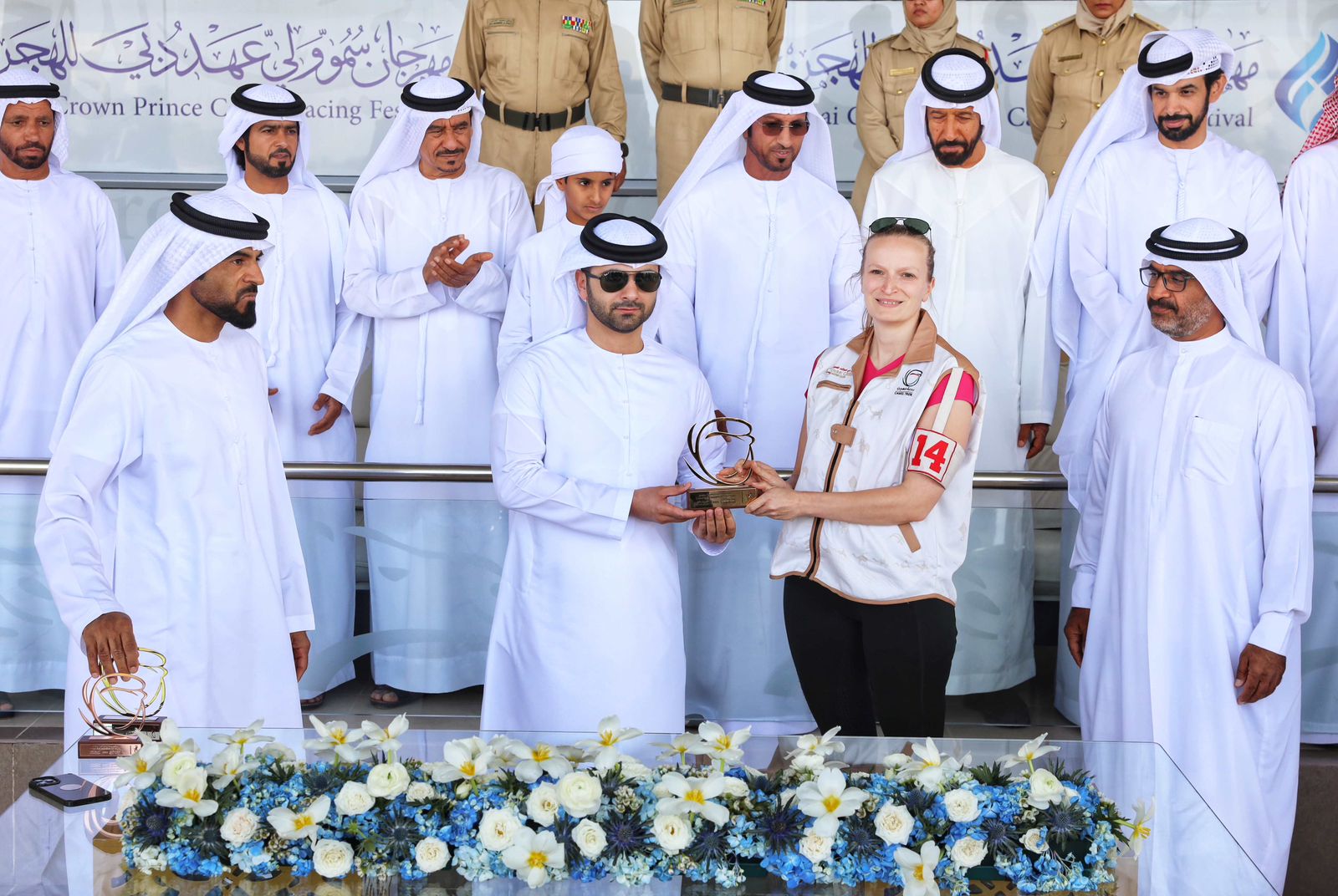 وكالة الناس -توّج سمو الشيخ منصور بن محمد بن راشد آل مكتوم، رئيس مجلس دبي الرياضي، الفائزين بماراثون رحلة الهجن لغير المواطنين في نسخته الخامسة، الذي تنظمهُ إدارة الفعاليات في مركز حمدان بن محمد لإحياء التراث، بالتعاون مع نادي دبي لسباقات الهجن في مضمار المرموم،