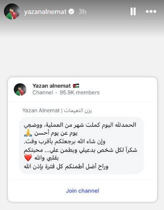 ونشر النعيمات رسالة عبر موقع التواصل الاجتماعي انستغرام جاء فيها: