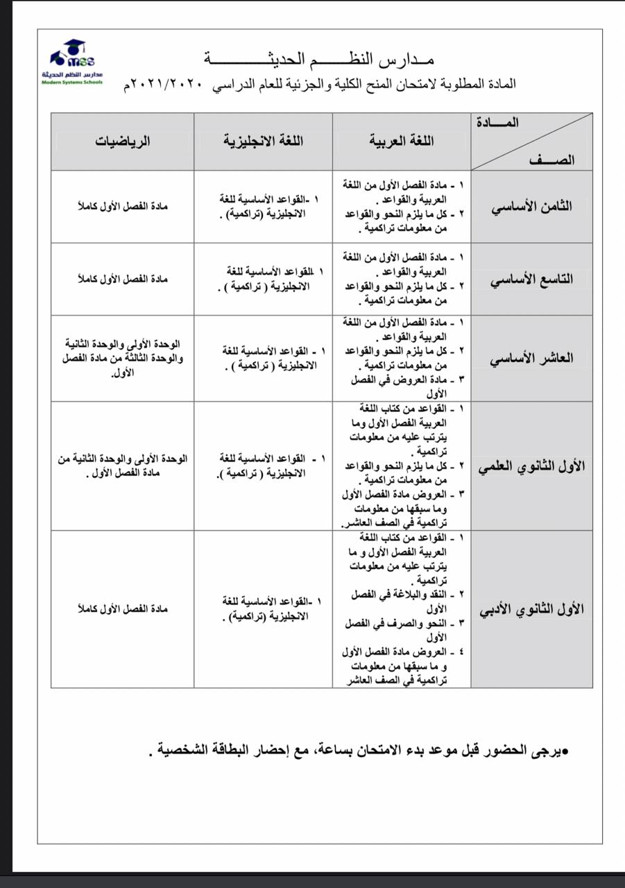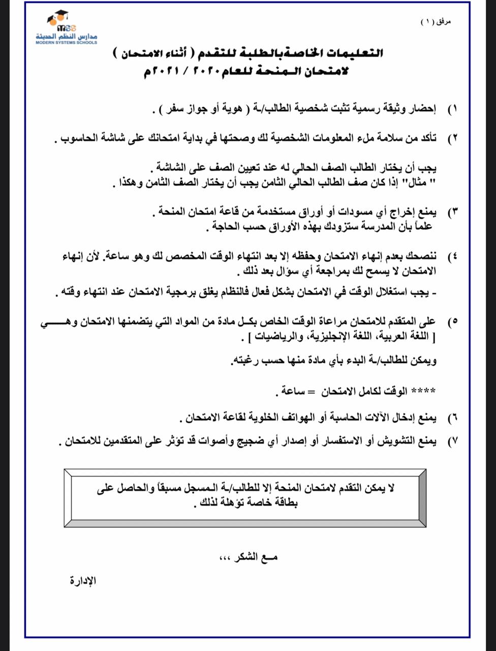 امتحان المنحة الدراسية للعام 2020-2021 في مدارس النظم الحديثة2