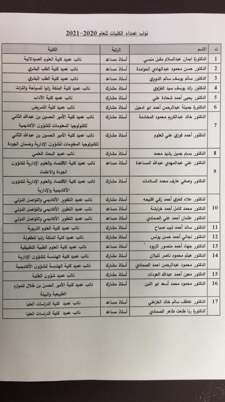 الجامعه الهاشميه تتخذ قرارات هامه بتعيين ١٧ نائب عميد كليه .. اسماء