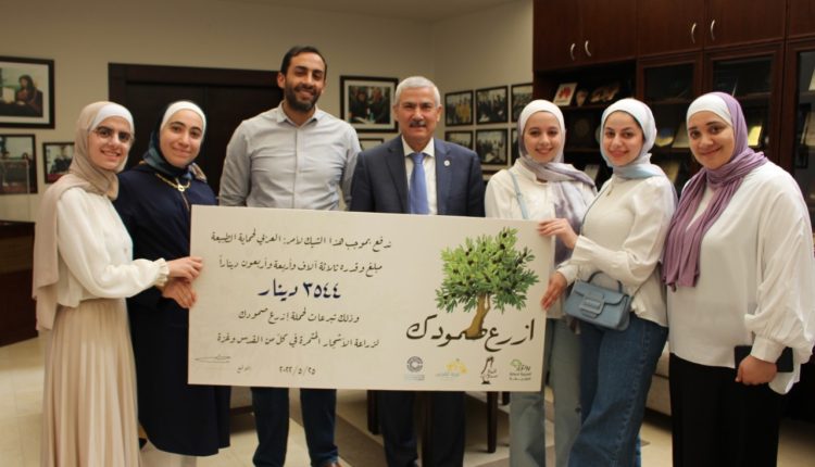 وقال عميد شؤون الطلبة الدكتور رامي سالم إن طلبة الجامعة يرون أن هذا التبرع هو أقل ما يمكن تقديمه لصمود أهلنا في الأراضي المحتلة مقدرا جهود الجمعية العربية لحماية الطبيعة على رعاية هذه الحملة الدالة على الحس الوطني والإنساني والانتماء في دعم صمود الإخوة المقدسيين.