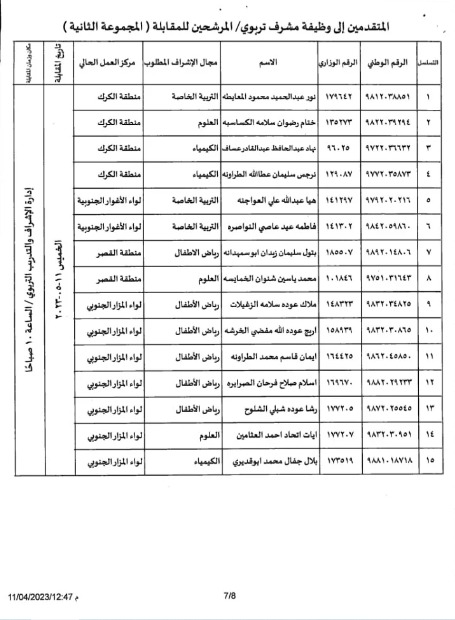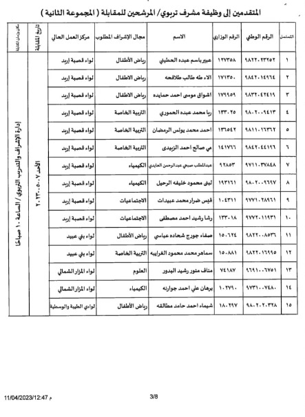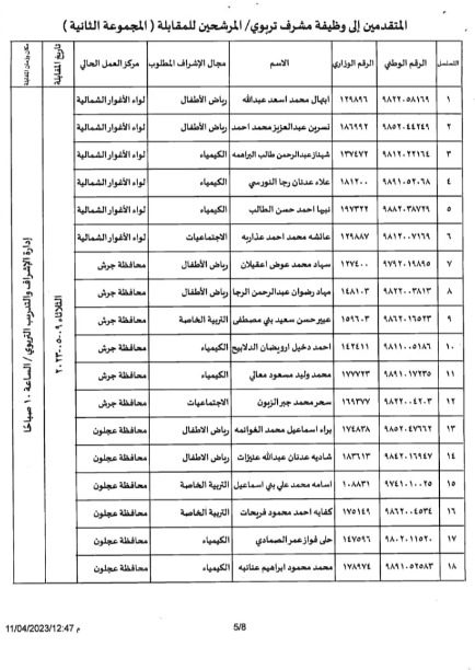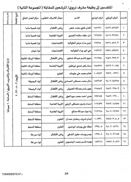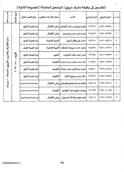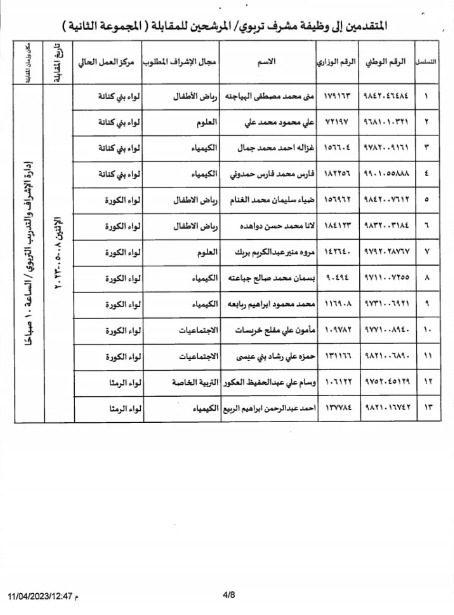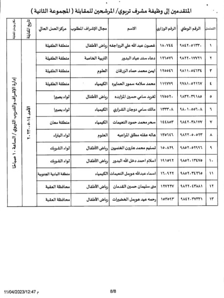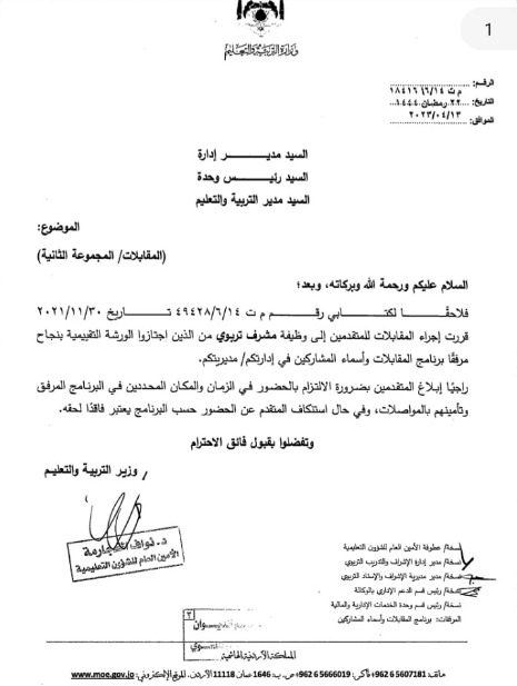 مدعوون لإجراء مقابلات لوظيفة مشرف تربوي ( أسماء )