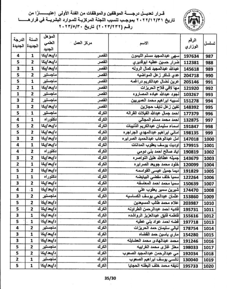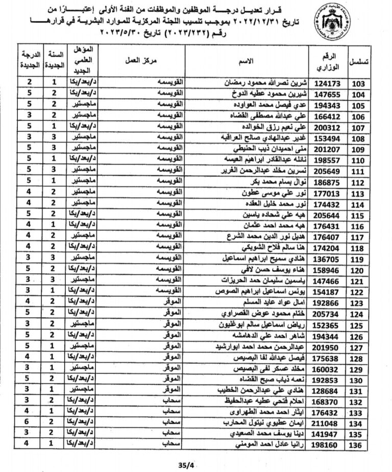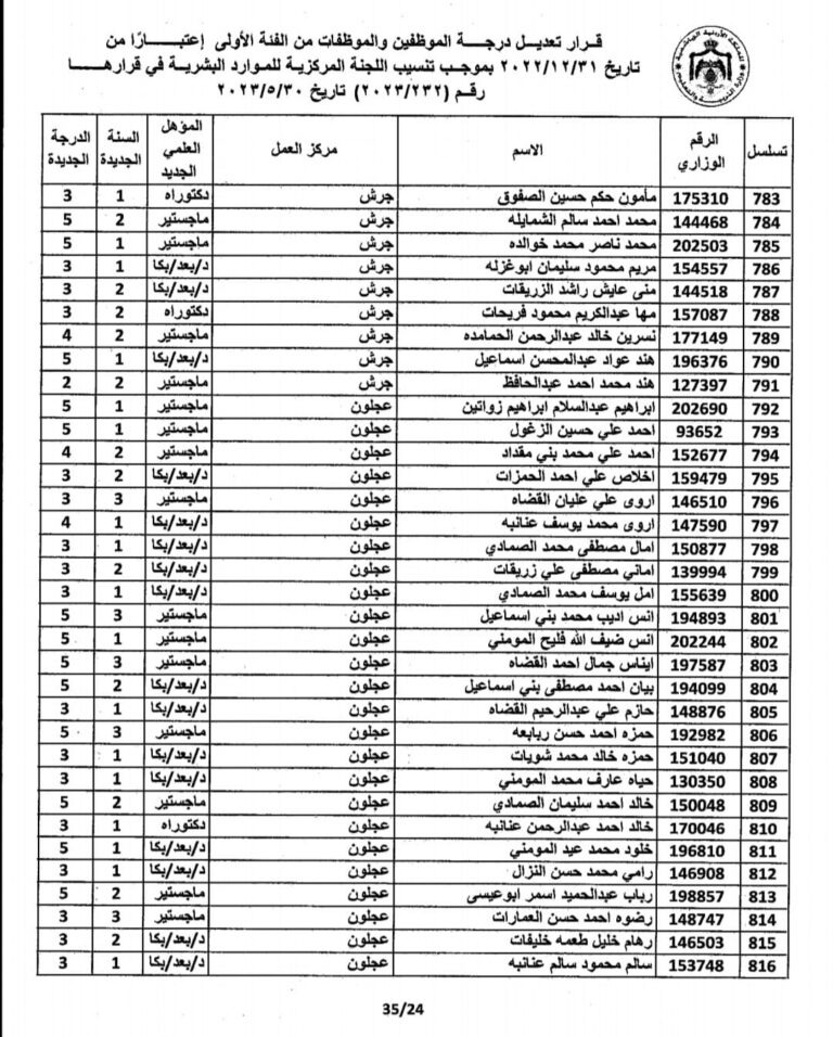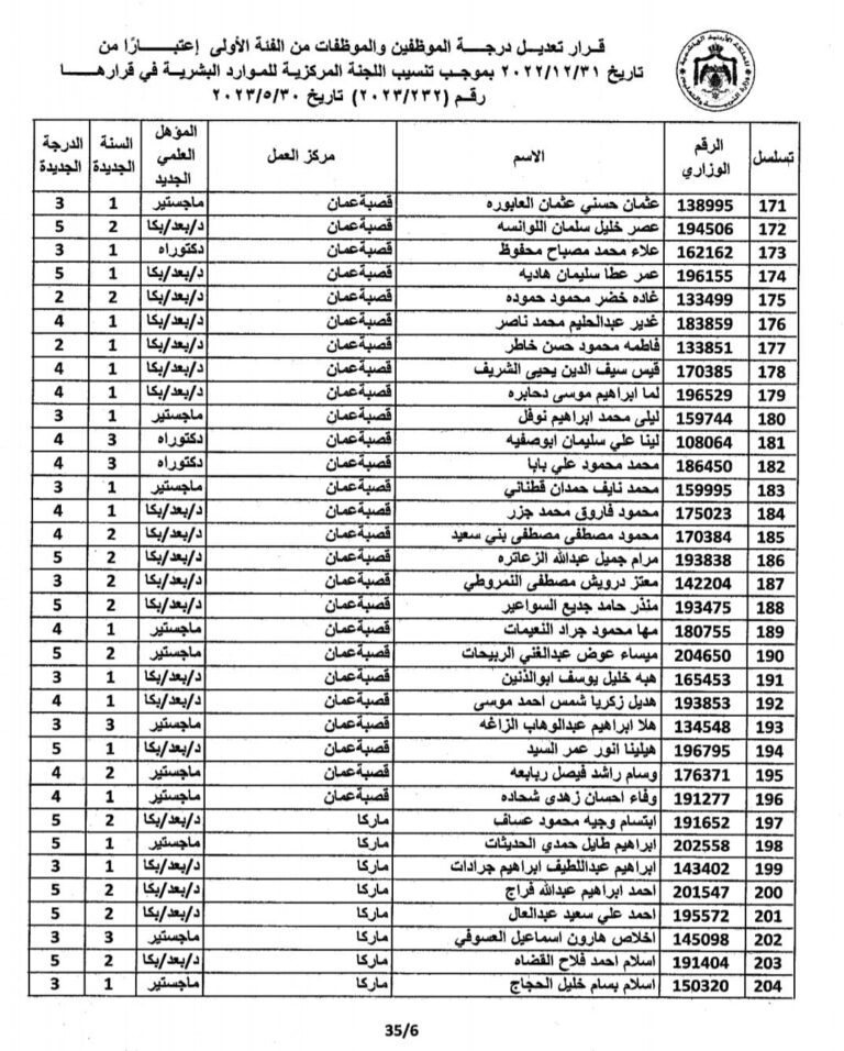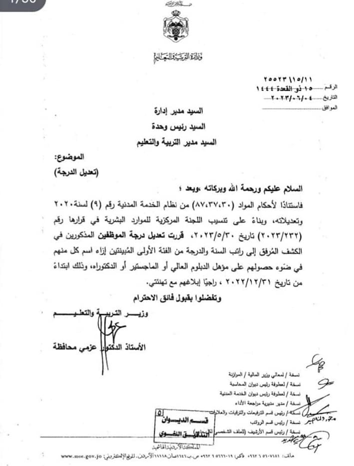 و جاء تعديل درجات الموظفين في ضوء حصولهم على مؤهل الدبلوم العالي أو الماجستير أو الدكتوراه، ويعتبر قرار تعديل درجتهم ساريا ابتداء من تاريخ 31 /12 /2022.