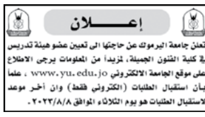 جامعة اليرموك بحاجة لتعيين عضو هيئة تدريس On يوليو 26, 2023 Share وكالة الناس – جامعة اليرموك بحاجة لتعيين عضو هيئة تدريس