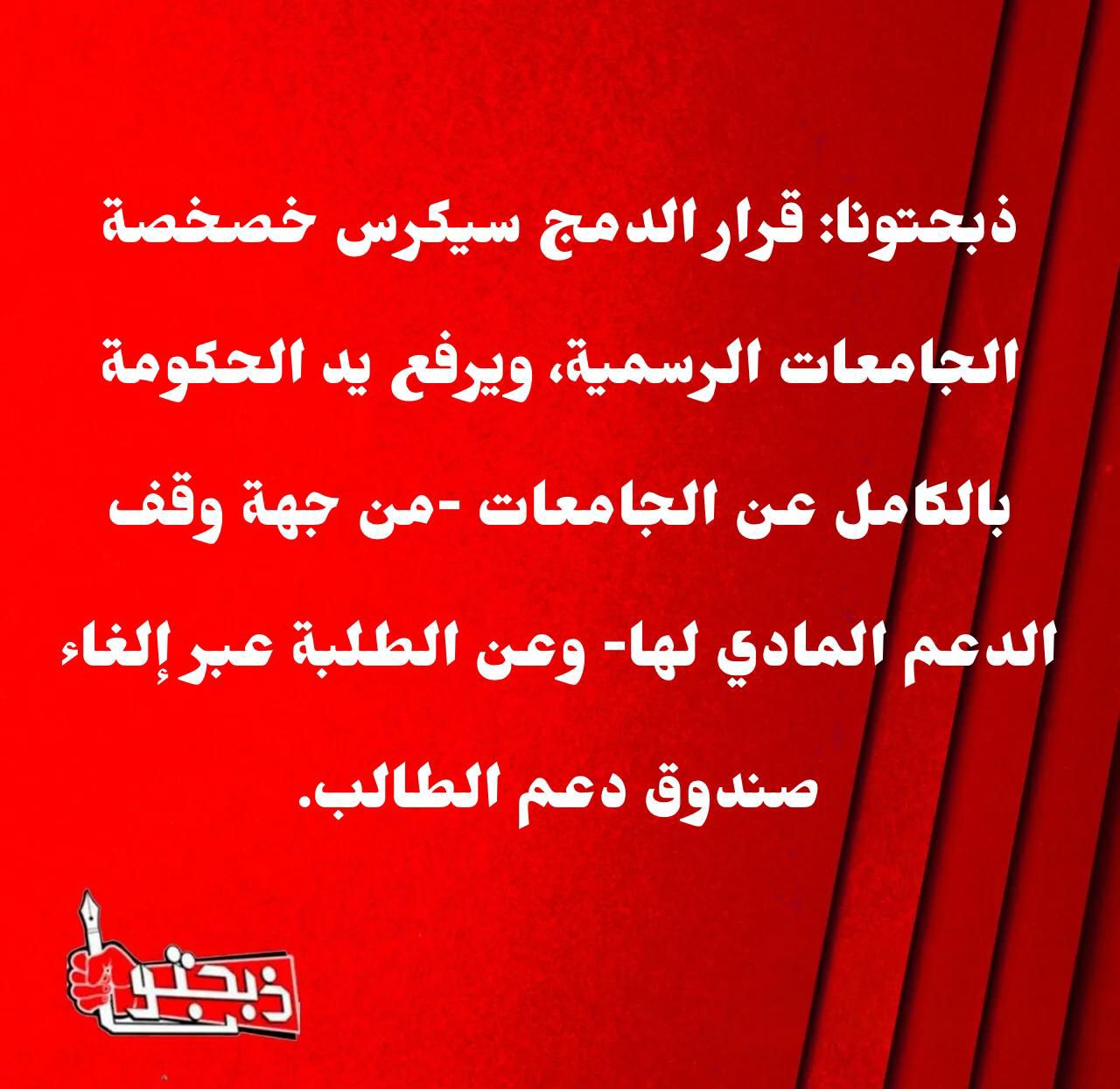 واعتبرت ذبحتونا أن هذا القرار سيكرس خصخصة الجامعات الرسمية، ويرفع يد الحكومة بالكامل عن الجامعات -من جهة وقف الدعم المادي لها- وعن الطلبة عبر إلغاء صندوق دعم الطالب.