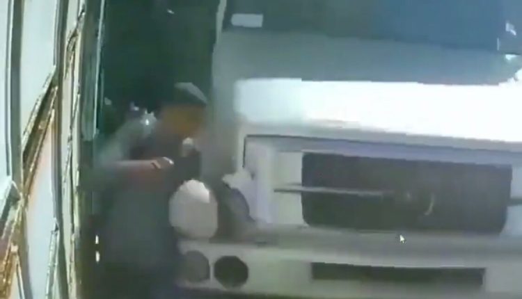 وكالة الناس – نجا رجل من موت محقق بعدما اصطدمت به شاحنة كبيرة وهو يسير على ممر المشاة.