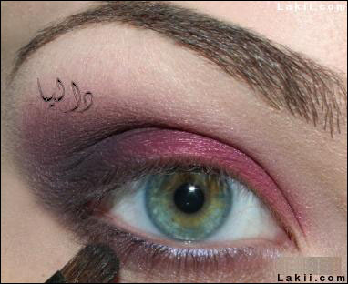 طبعا باستخدام فرشاة صغيرة ودقيقة للحصول على خط رفيع تحت العين