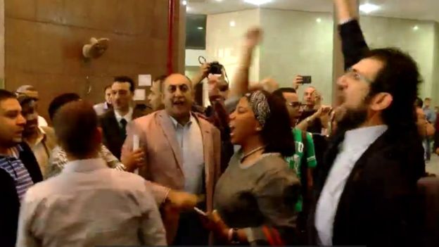 وبث التلفزيون المصري على الهواء مباشرة جلسة المحكمة.