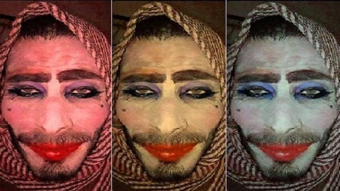 الجيش العراقي لم يذكر اسمه، ولا أسماء سواه ممن اعتقلهم متنكرين، بل نشر صورهم بثيابهم النسائية التي استخدموها، وأهمها صورة من نسي ذقنه وشاربه، وتنشر ‘العربية.نت’ أصليتها أدناه إلى جانب صورته قبل التنكر، حيث نجد الفرق كبيرا في كل جزء من وجهه المكتظ بمساحيق التجميل.