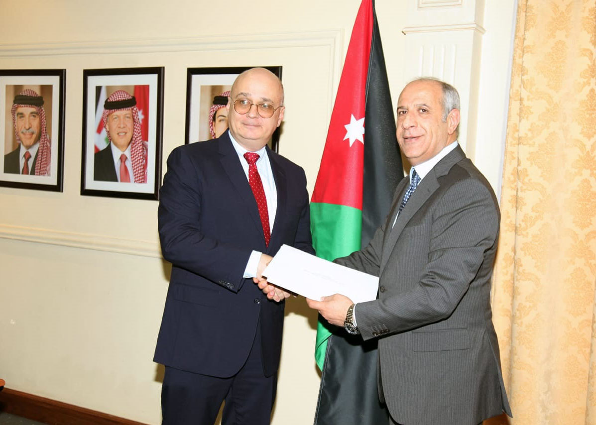 وكالة الناس – تسلم امين عام وزارة الخارجية وشؤون المغتربين السفير زيد اللوزي نسخة من أوراق اعتماد السفير الجديد لروسيا الاتحادية الصديقة لدى المملكة السفير غليب ديسياتينوف، وذلك خلال اللقاء الذي تم صباح اليوم في مكتبه بوزارة الخارجية.