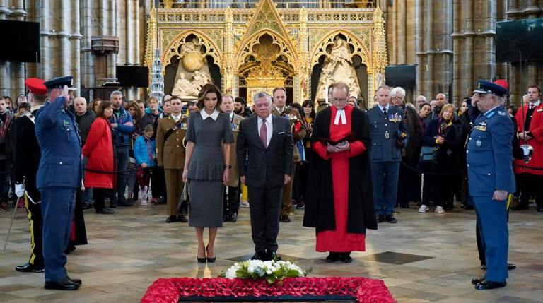 الملك و الملكة يزوران نصب الجندي المجهول في لندن On مارس 1, 2019 Share وكالة الناس – زار جلالة الملك عبدالله الثاني ترافقه جلالة الملكة رانيا العبدالله، اليوم الجمعة، نصب الجندي المجهول في لندن، حيث وضع جلالة الملك إكليلا من الزهور على النصب.