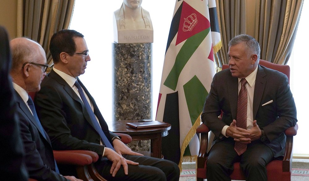 وأعرب جلالة الملك، خلال اللقاء الذي حضره رئيس الوزراء الدكتور عمر الرزاز، عن تقديره لمشاركة الولايات المتحدة في المؤتمر وللدعم الذي تقدمه للأردن في العديد من المجالات. وتناول اللقاء علاقات الشراكة الاستراتيجية بين الأردن والولايات المتحدة، وآليات تعزيز التعاون الاقتصادي المشترك. وأشاد وزير الخزانة الأمريكي بالإصلاحات والخطط الاقتصادية التي ينفذها الأردن لتحفيز معدلات النمو الاقتصادي والاستثمار وتوفير فرص العمل والتي تم عرضها في مؤتمر مبادرة لندن، مؤكدا التزام بلاده الدائم بدعم الأردن في مختلف المجالات.