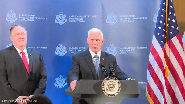 وقال بنس إن العملية التركية “ستتوقف بشكل تام بعد انتهاء” الانسحاب خلال هذه المدة، وذلك بعد محادثات مع الرئيس رجب طيب اردوغان استمرت أكثر من أربع ساعات.