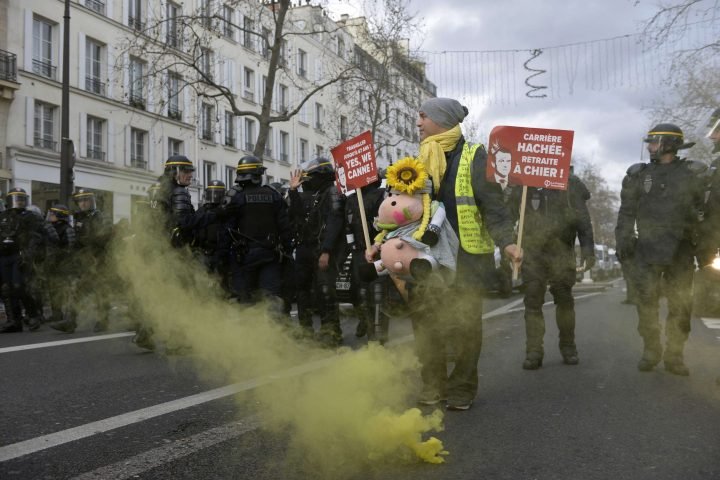 وكالة الناس – أطلقت الشرطة الفرنسية الغاز المسيل للدموع على المتظاهرين في باريس، الثلاثاء، فيما ألقيت مقذوفات على صفوف الشرطة وذلك حسبما قال صحافي في موقع الحدث، واندلعت هذه الاشتباكات قرب ساحة الأمة في شرق باريس خلال مظاهرة نظمتها نقابات العمال لمطالبة الرئيس الفرنسي إيمانويل ماكرون بالتخلي عن إصلاح مزمع لنظام المعاشات.