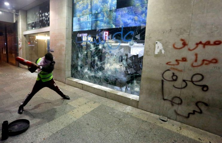 وقالت المديرية العامة لقوى الأمن الداخلي، في بيان صحافي اليوم الأربعاء بثته الوكالة الوطنية للإعلام اللبنانية، إن مثيري الشغب قاموا مساء أمس بالاعتداء على عناصر قوى الأمن الداخلي المتمركزين أمام مصرف لبنان المركزي برمي الحجارة والمفرقعات وتوجيه الشتائم، حيث أصيب عدد من العناصر بكسور ورضوض، لافتة إلى أن مثيري الشغب عمدوا إلى إزالة العوائق الخشبية وتكسير غرفة الحراسة، محاولين الدخول باتجاه المصرف، فجرى ردعهم.