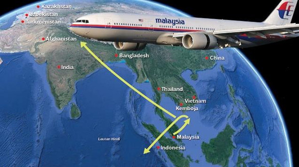 وكان رئيس الوزراء الماليزي، نجيب عبدالرزاق، ذكر السبت أن رادار دفاع جوي التقط إشارات تفيد بأن الطائرة استدارت غرباً باتجاه الأجزاء الشمالية من مضيق ‘ملقة’ الفاصل بين ماليزيا وإندونيسيا، وأن من كان يقودها اتبع واحداً من مسارين: شمالي، يبدأ من شمال تايلاند إلى حدود كازاخستان وتركمانستان، الأبعد عن ماليزيا في آسيا الوسطى من باكستان وأفغانستان، أو جنوبي يبدأ من إندونيسيا باتجاه المحيط الهندي، حيث جزيرتا أندمان ونيكوبار التابعتان للهند.
