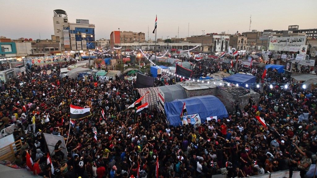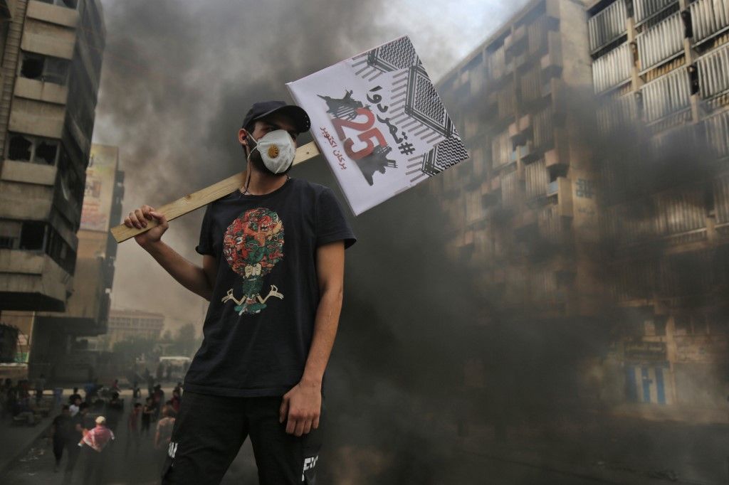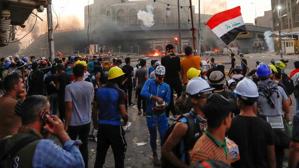 وكان الآلاف قد تظاهروا الأحد في مناطق متفرقة في البلاد، في الذكرى الأولى للاحتجاجات الشعبية غير المسبوقة ضد السلطات التي يعتبرها المحتجون عاجزة عن إصلاح الأوضاع ومعالجة البطالة ومحاربة الفساد وتحسين الخدمات الأساسية والحد من تزايد نفوذ الفصائل المسلحة الموالية لإيران.