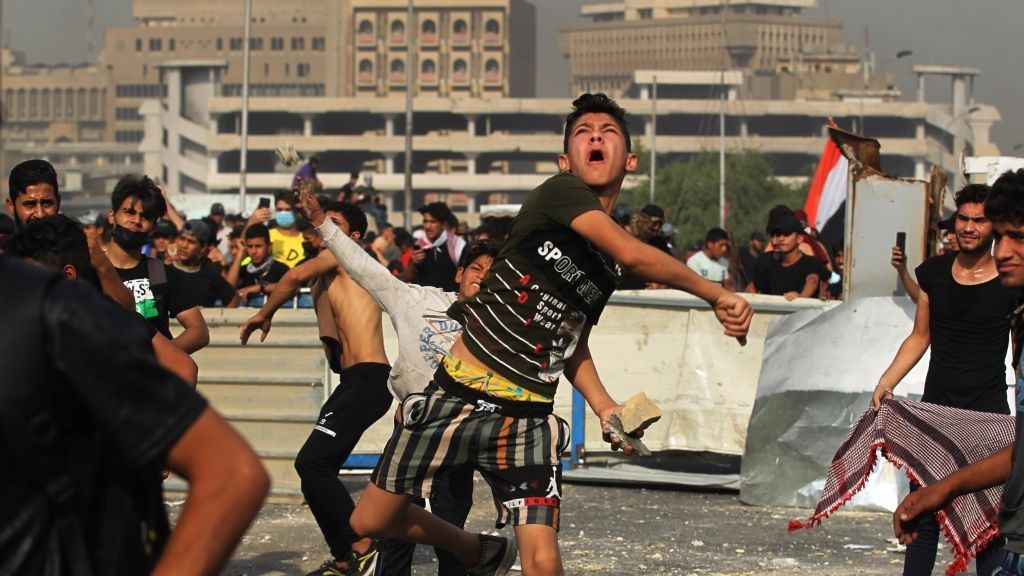 وقعت صدامات جديدة، الاثنين، بين عشرات المتظاهرين وقوات الأمن في ساحة التحرير، غداة تظاهرات شهدتها بغداد إحياء للذكرى السنوية الأولى لـ”ثورة أكتوبر”، فيما شهدت مدينة كربلاء ليلاً أيضاً مناوشات.