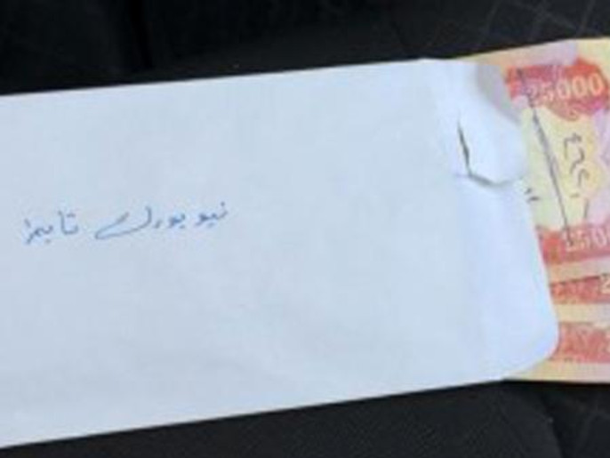 وأرفق تغريدته بصورة لمظروف ورقي كتب عليه ‘نيويورك تايمز’ ويحتوي على ثلاث أوراق من فئة 25 ألف دينار عراقي.