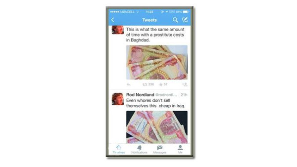 وكتب رود نوردلاند، مراسل صحيفة نيويورك تايمز، على حسابه في تويتر ‘ترى ما هي قيمة الصحفي العراقي 20.83$؟’.