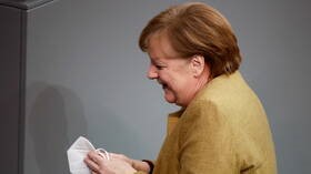 ميركل في موقف محرج بسبب الكمامة (فيديو)