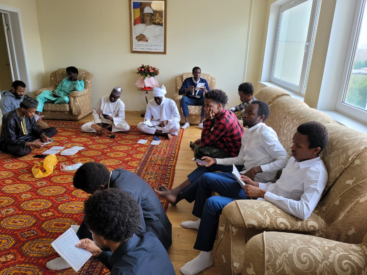 وكذلك قامت الجالية التشادية في موسكو واغلبيتها من الطلاب بختم تلاوة القرآن الكريم لروح المشير في دار اقامة السفير وخاطب السفير الحضور ذاكرا مآثر المشير وداعما للرئيس الجديد الفريق محمد ادريس دبي وداعيا له بالتوفيق في القيادةالرشيدة للانتقال بالشعب التشادي الى بر الامان.