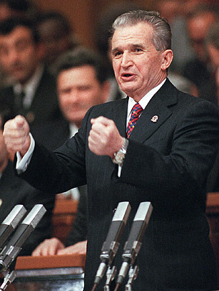 وتولى نيكولاي تشاوشيسكو، الرئاسة في رومانيا عام 1974 وحكمها بالحديد والنار، وكان مصابًا بجنون العظمة فكان يلقب نفسه بـ«القائد العظيم» و«المُلهم»، حتى قامت ثورة ضده في 1989، ليلوذ هو وزوجته بالفرار، إلى أن تم القبض عليه وأقيمت له محاكمة ثورية في ساعتين فقط في 25 ديسمبر 1989 وأعدم رميًا بالرصاص أمام الكاميرات، التي بثت عملية الإعدام مباشرة حتى يصدّق الناس أن هذا الطاغية قد مات.