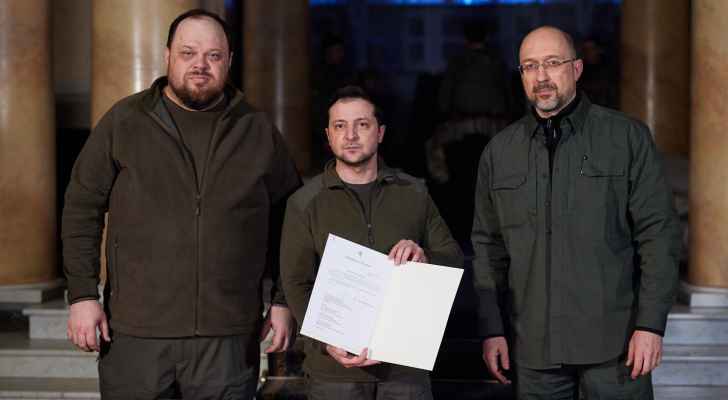 وطلب زيلينسكي من الاتحاد الأوروبي السماح لأوكرانيا بالحصول على العضوية على الفور، بموجب إجراء خاص لأنها تدافع عن نفسها في مواجهة القوات الروسية