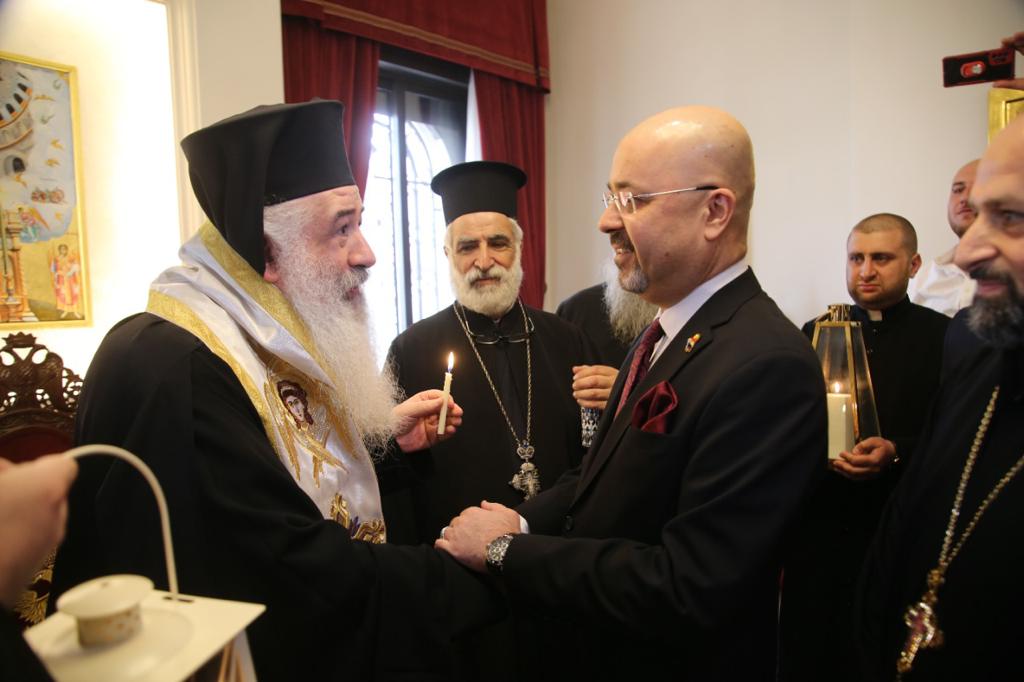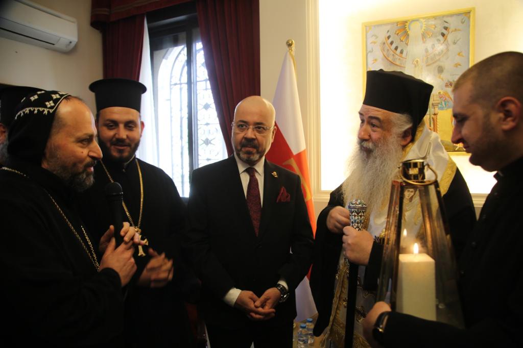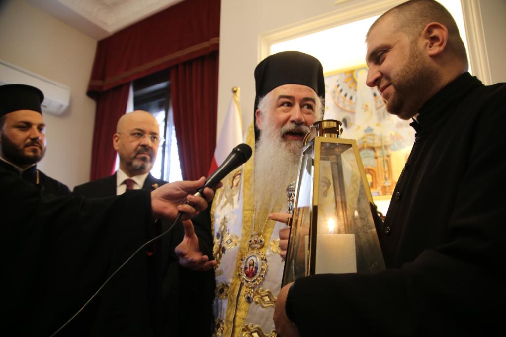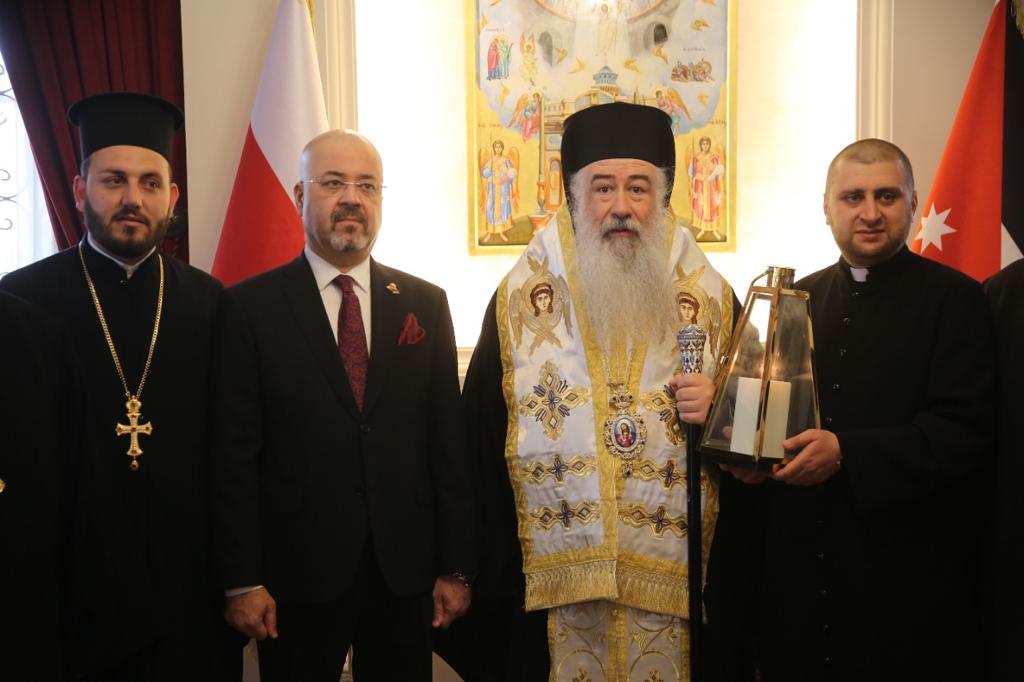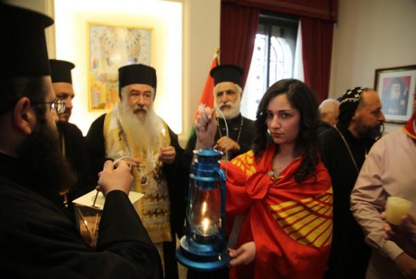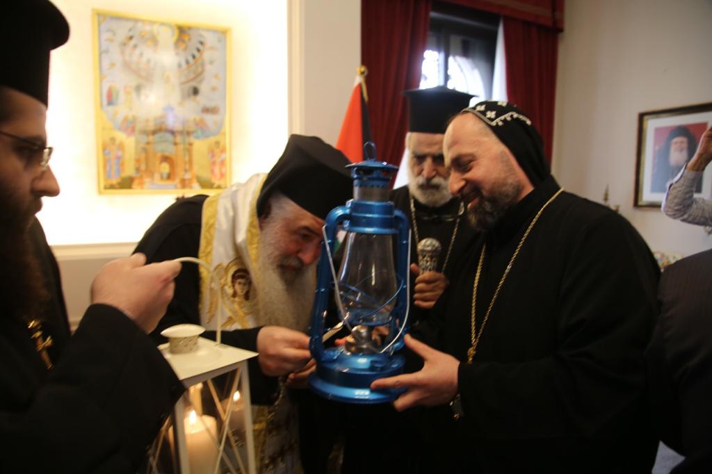 وتوجَّهَ الوفدُ العراقيّ الضّيفُ وعلى رأسِهِ الأب دانييال بِحنام وبحضورِ السَّفير العراقيّ في الأردنّ حيدر العذاري والأب بنيامين شمعون راعي كنيسةِ مارإفرام للسّريان الارثوذكس في عمّان مع وجهاءٍ من كنيسةِ السّريانِ في الأردنّ إلى دارِ مطرانيّة الرّومِ الأرثوذكس لاستلام النّورِ المُقدّس من يدِ سيادةِ المُطران خريستوفوروس مطران الأردنّ الذي تمنّى كلَ الخيرِ والسّلامِ لجميعِ الشّعبِ العراقيّ وثمّنَ للحُكومةِ العراقيَّةِ هذهِ المُبادرة الكبيرة.