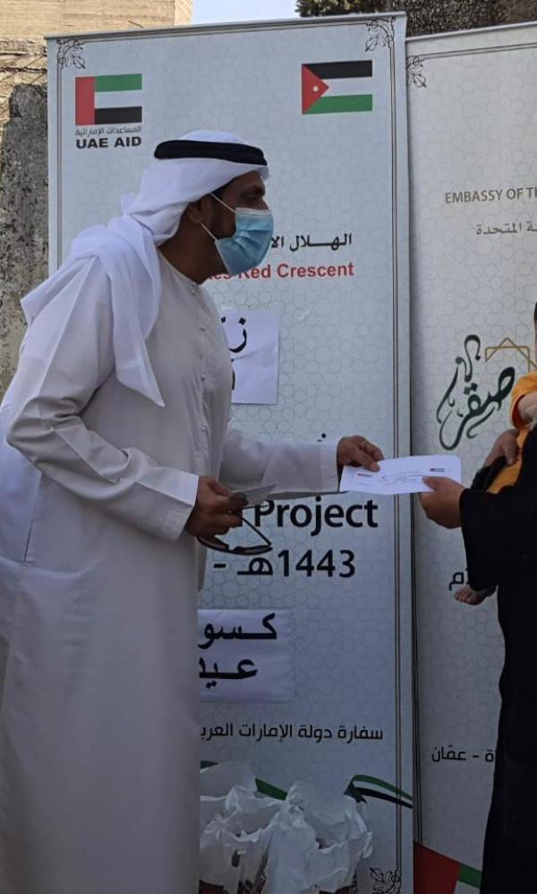 كما جرى توزيع زكاة الفطر وكسوة عيد المقدمة من الهلال الأحمر الإماراتي، على مئات الأسر المتعففة والأيتام في العاصمة عمّان والعديد من المناطق ومحافظات المملكة، وقد حضر السيد خالد النعيمي جانباً من عمليات التوزيع في العديد من محافظات المملكة، كما حضرها ممثلي السفارة من الكادر المحلي.