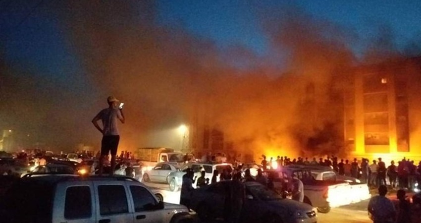 وأظهرت مقاطع فيديو نشرها ناشطون على مواقع التواصل الاجتماعي، عشرات المحتجين وهم يضرمون النيران أمام مجلس النواب قبل أن يقوموا باقتحامه ويشعلون النيران بداخله.
