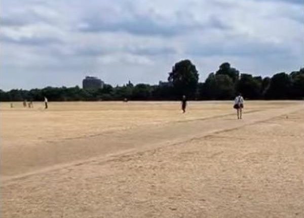 وكالة الناس – أظهر مقطع فيديو متداول على موقع التواصل الاجتماعي، كيف حول ارتفاع درجات الحرارة حديقة الهايد بارك في لندن، إلى أرض جرداء بدون خضرة.