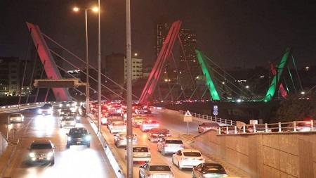 وكالة الناس – أضاءت أمانة عمّان مساء الجمعة، جسر عبدون بألوان علم المغرب بمناسبة الذكرى الـ67 لاستقلال المملكة المغربية.