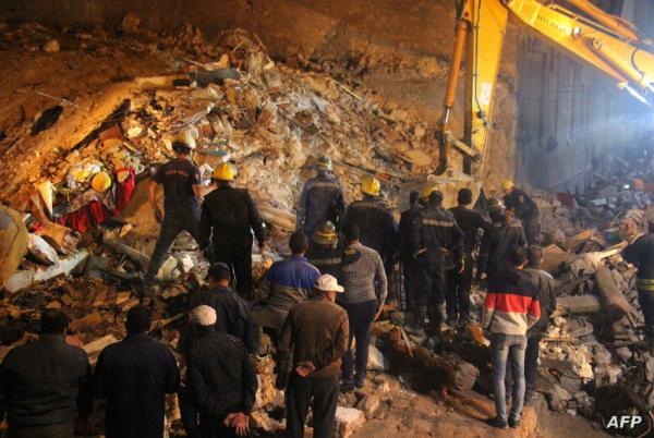 وأظهر تسجيل مصور نشره مكتب المحافظ، رجال إنقاذ يحاولون إزالة الركام، ويمارسون عملهم وسط الأنقاض.