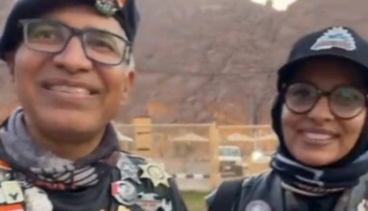 شاهد.. رحالة سعودية وزوجها الهندي يسافران من جدة إلى حائل على دراجة نارية للمشاركة في احتفالات يوم التأسيس
