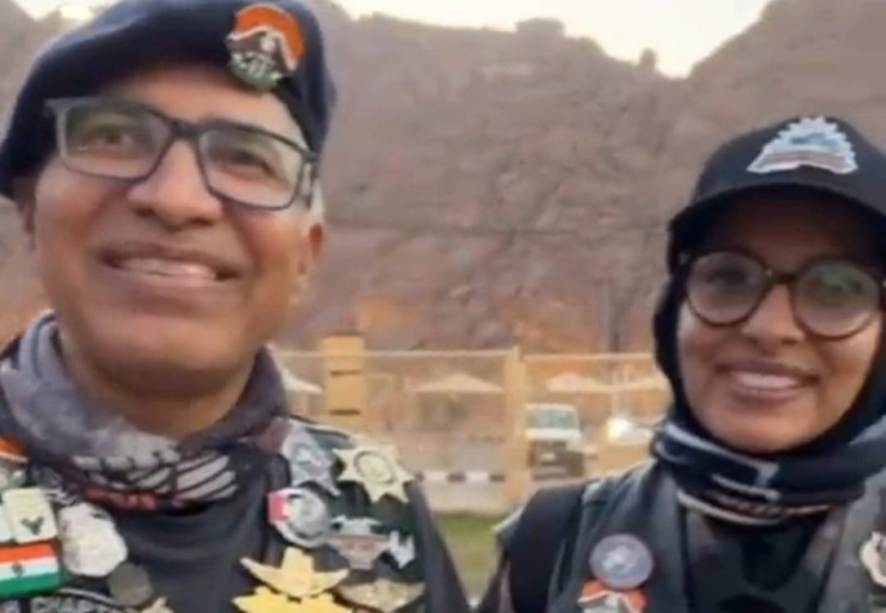 وثق مقطع فيديو قيام رحالة سعودية وزوجها الهندي بالسفر من جدة إلى حائل على دراجة نارية ليحضرا احتفالات يوم التأسيس.